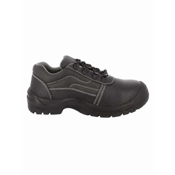 Zapato de seguridad de piel de flor baja para hombre y mujer. Proporciona alta resistencia gracias a la puntera de acero y inserto antiperforación, así como resistencia a los hidrocarburos gracias a la suela inyectada en PU. La lengüeta acolchada con refuerzo garantiza una comodidad óptima. Masa medio de 580 g para una talla 42.Especificaciones