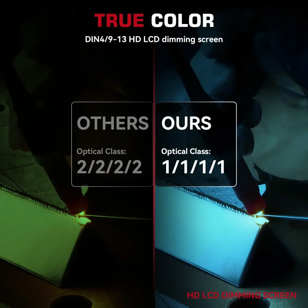 - Claridad superior: el casco de soldadura cuenta con una lente de claridad óptica superior de 1/1/1/1 con tecnología avanzada de color verdadero y una gran pantalla