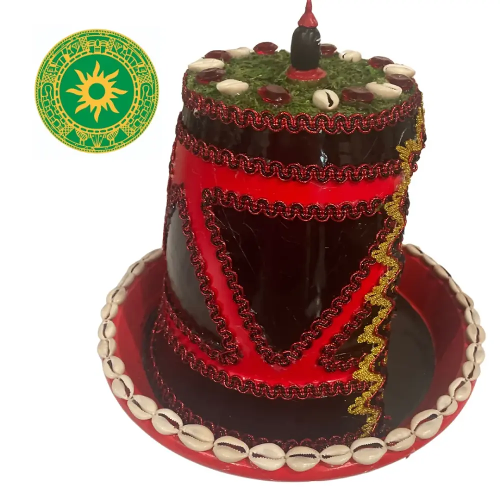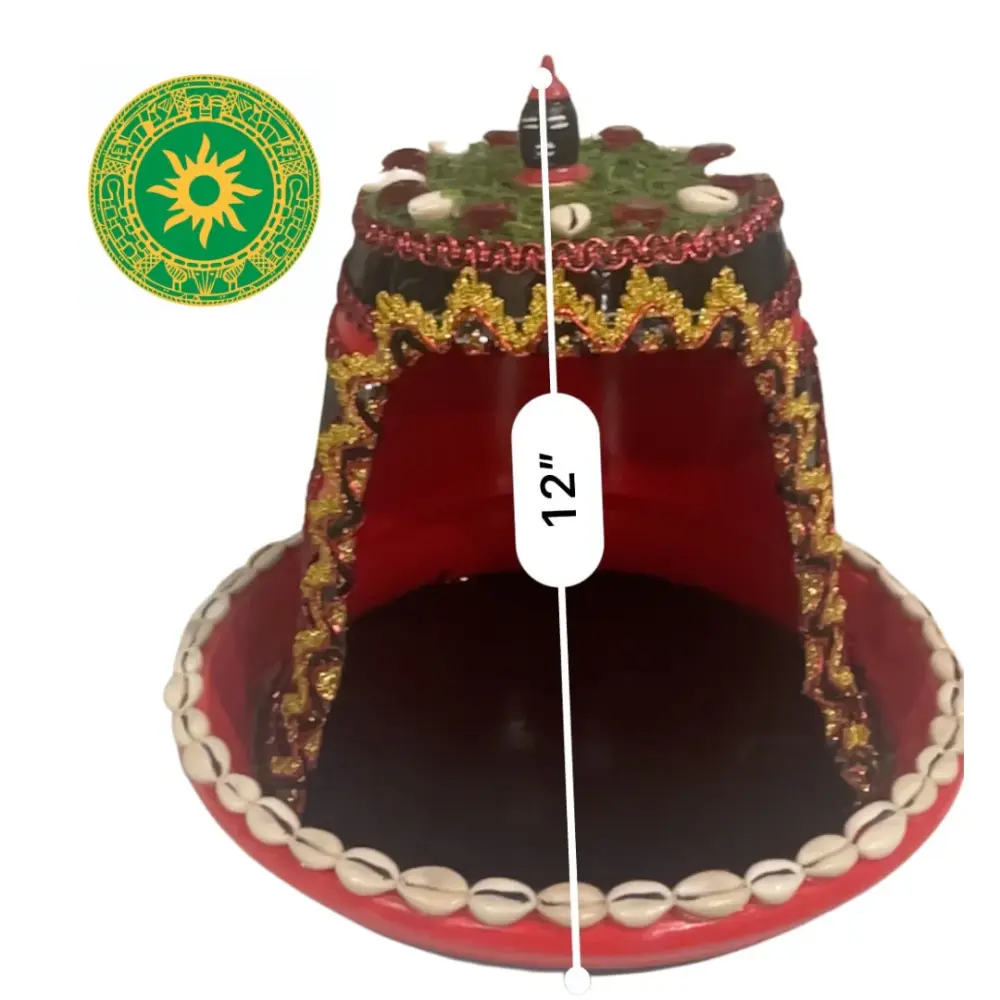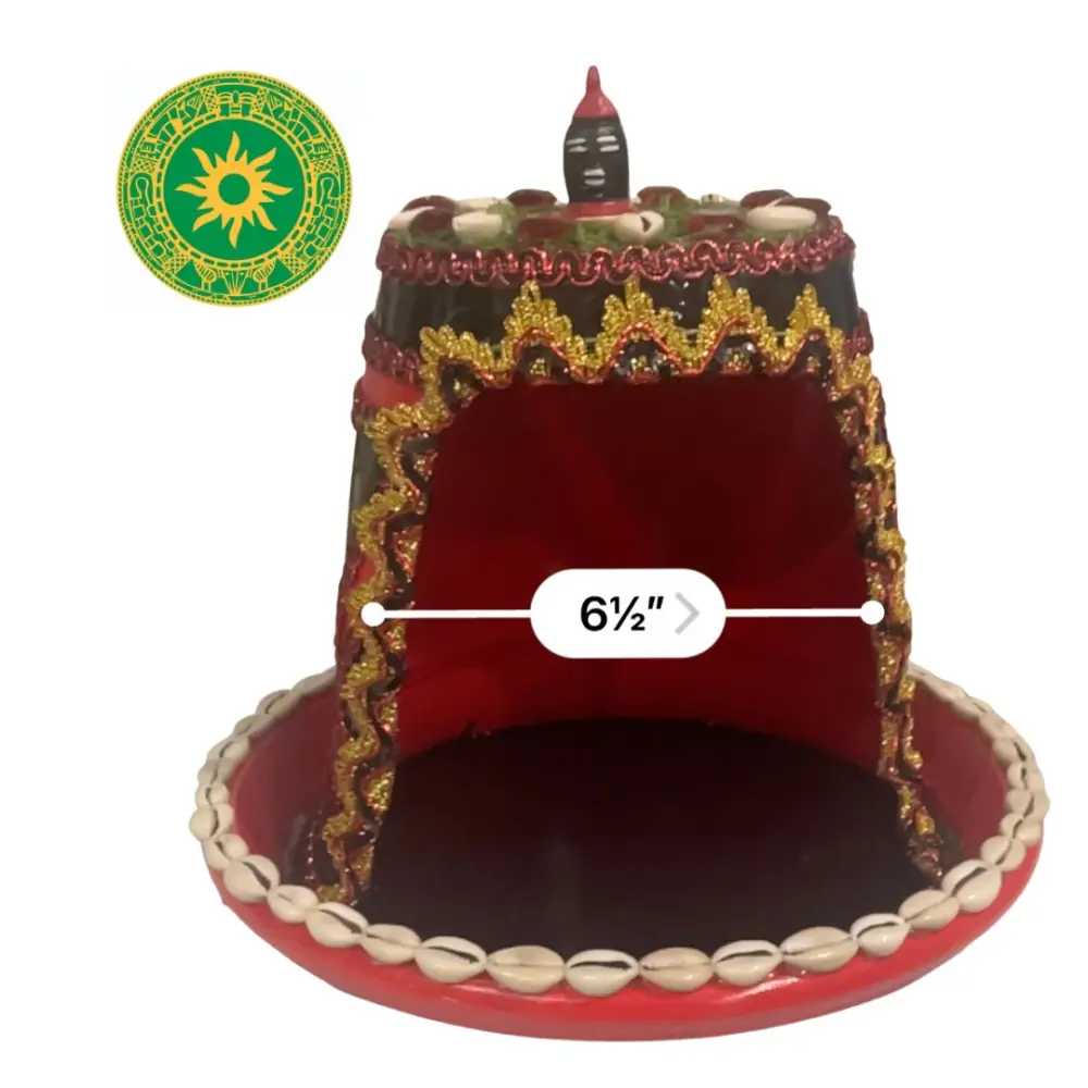 Casita de Elegua. Fabricada por los artesanos de Inshe, su producción toma de 1 a 2 semanas cuando se agotan. La base de abajo es barro y un material diferente que pesa poco. Miden aproximadamente de elevado 12″ y 6″ de ancho.
