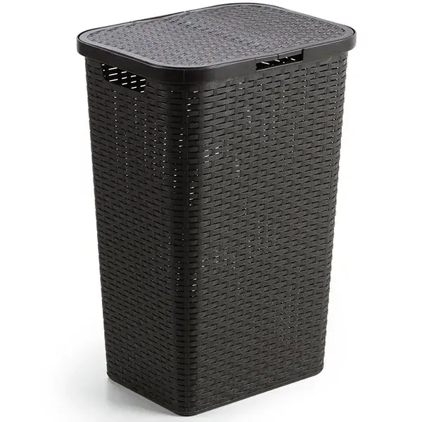 Presenta un diseño que simula un tejido trenzado fabricado en plástico y es de color antracita, además es muy fácil de higienizar. Podrás transportarla de un lado a otro de la casa gracias a las dos asas que presenta a los lados
