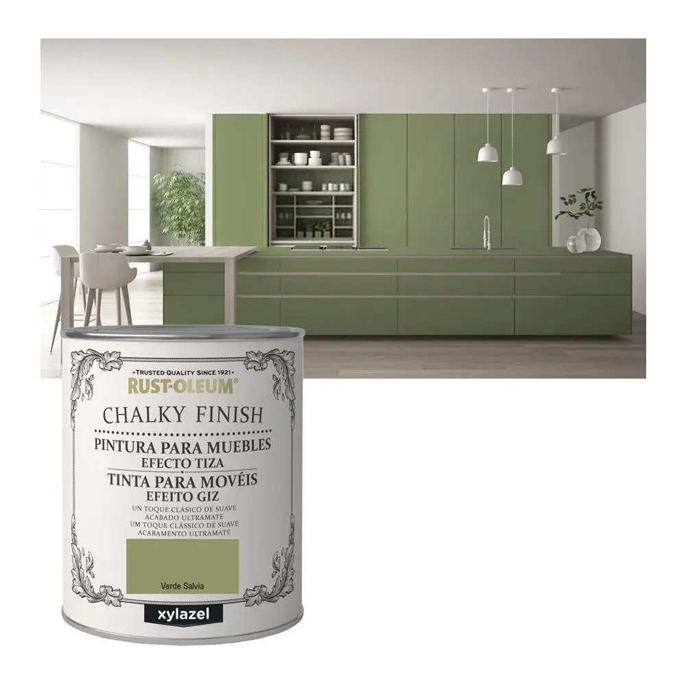 Pintura al agua para muebles de efecto tiza que puede usarse directamente sobre madera (pintada o sin pintar), ladrillo, piedra, escayola o cualquier otra superficie rígida.Si se quiere conseguir un aspecto envejecido se debe aplicar 2 capas con colores diferentes en contraste y a continuación pasar la lija o lana de acero una vez seca la pintura.Una vez acabado la pintra se debe utilizar la cera rust-oleum o barniz mate. Sin olor y acabado ultramate con gran poder de cubrición con una mano.Sin necesidad de imprimación ni lijado, puede aplicarse directamente sobre madera, ladrillo, piedra, escayola o cualquier superficie rígida como metal, plástico, etc.. Con la imprimación adecuada.Especificaciones