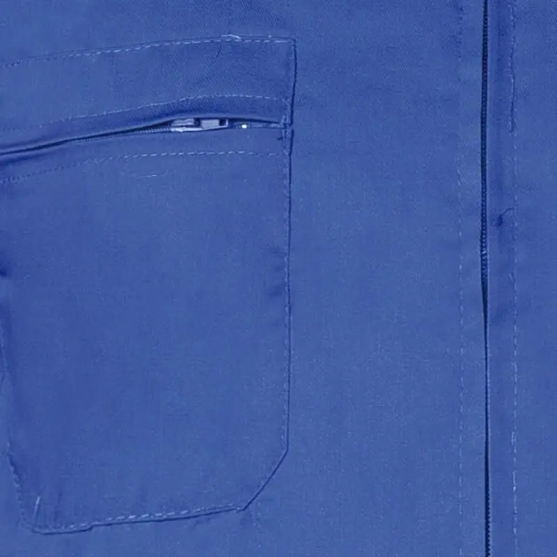Chaqueta azul.-talla 50.- composición: 65% poliester, 35% algodón.- no utilizar lejia.- articulo conocido como vestuario laboral.Especificaciones