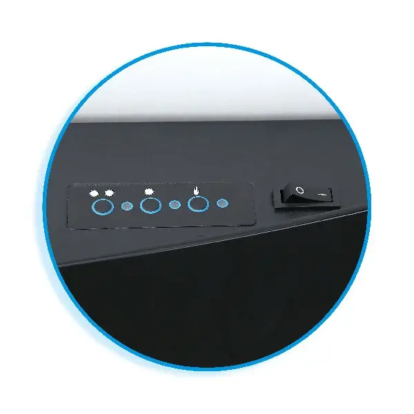 Panel de control manual ubicado en parte superior, con 2 niveles de potencia para adecuar la mejor temperatura para la habitación en cada momento.