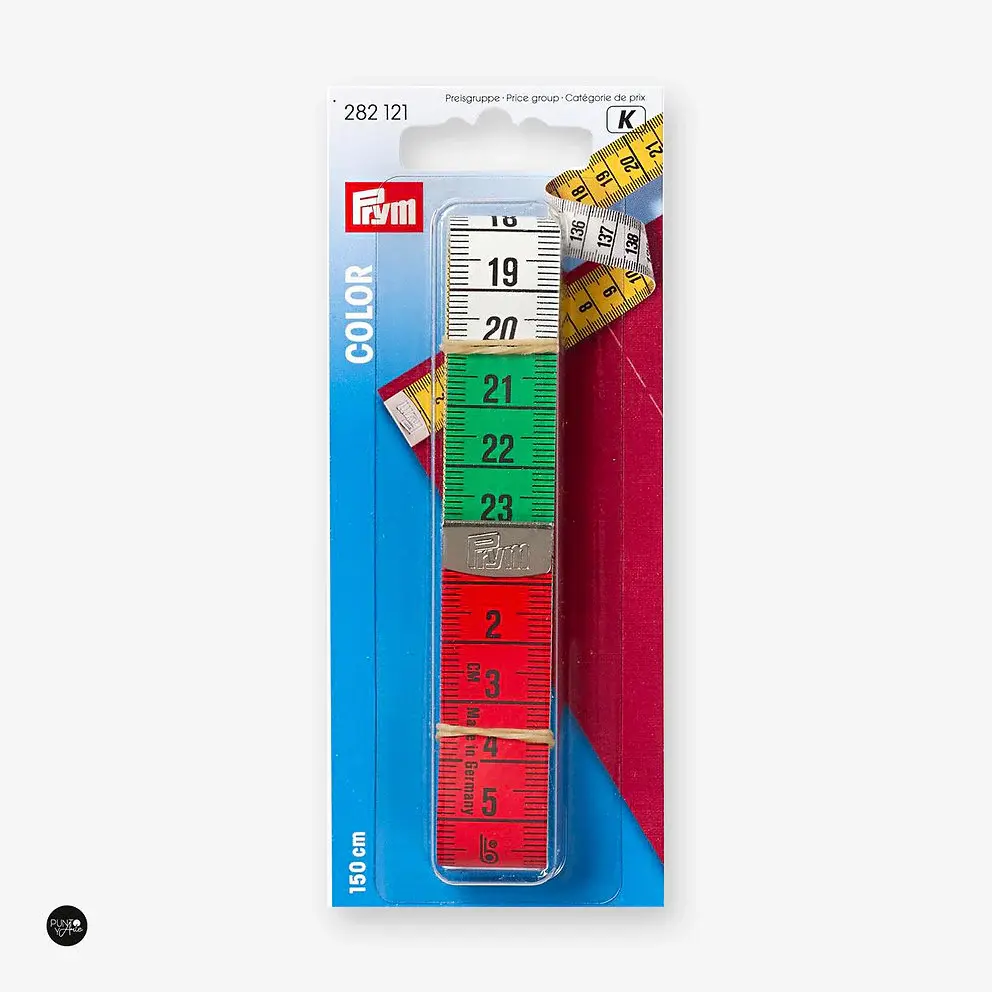 Al coser, confeccionar, hacer manualidades y cualquier otro trabajo artesanal, la cinta métrica Prym COLOR con su escala de tres colores proporciona la máxima visibilidad. Sobre los colores de fondo rojo, blanco y verde, la escala centimétrica negra es fácilmente reconocible y permite un trabajo meticulosamente preciso. El dorso amarillo otorga un mayor grado de flexibilidad que se imprime con una escala en centímetros o pulgadas. La práctica longitud de 1,50 m permite un manejo rápido y directo de esta cinta métrica de plástico resistente. Un grosor de cinta de 0,5 mm y marcos metálicos en ambos extremos garantizan una larga vida útil de la cinta métrica.