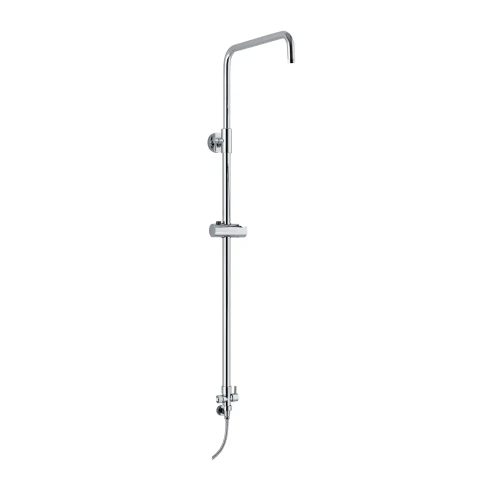 Colonna doccia C15 regolabile con attacco flessibile e soffione da 25 cm, proposta da Sphera. Realizzata in ottone massiccio con finitura cromata di alta qualità, incarna una linea di vasto pregio e affidabilità. La testa a pioggia rotonda offre un getto ampio e avvolgente, mentre la doccia a mano, regolabile e snodabile, assicura versatilità e comfort in ogni gesto. La colonna, dal profilo tondo di diametro 2,4 cm, integra uno supporto regolabile che facilita l’installazione e garantisce una linea pulita e raffinata in ogni bagno.