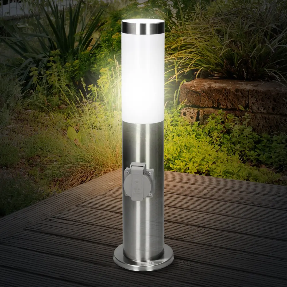 Esta moderna luz exterior no solo facilita luz en el jardín, en la terraza y en el camino de entrada, sino que también gracias a la toma integrada también a la electricidad