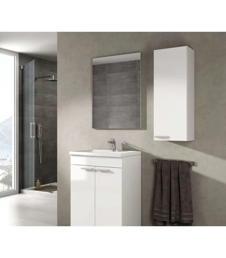 Sencilla columna suspendida en blanco brillo con gran capacidad de almacenaje.
