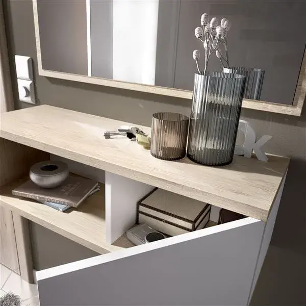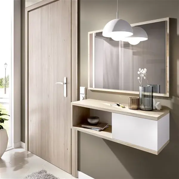 Recibidor Kam 1 puerta y espejo natural/blanco 03K4358643