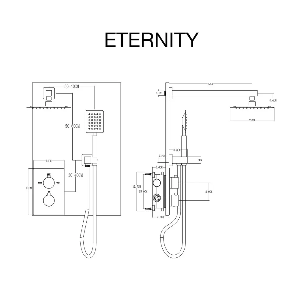 Conjunto de ducha encastrado termostático 2 vías SKY BATH – Série ETERNITY.