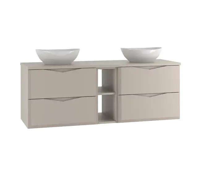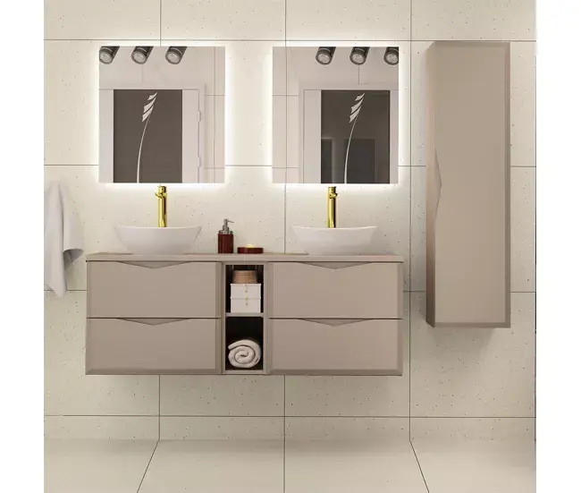 Conjunto de muebles con doble lavabo 140cm 2 compartimientos y columna Ellie Cachemira