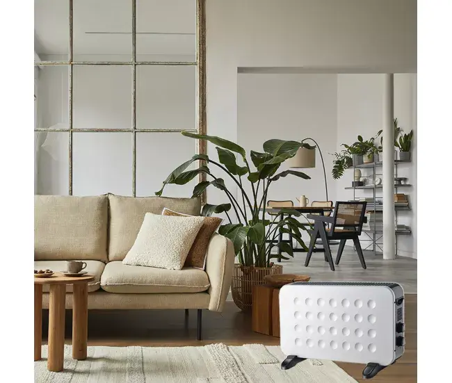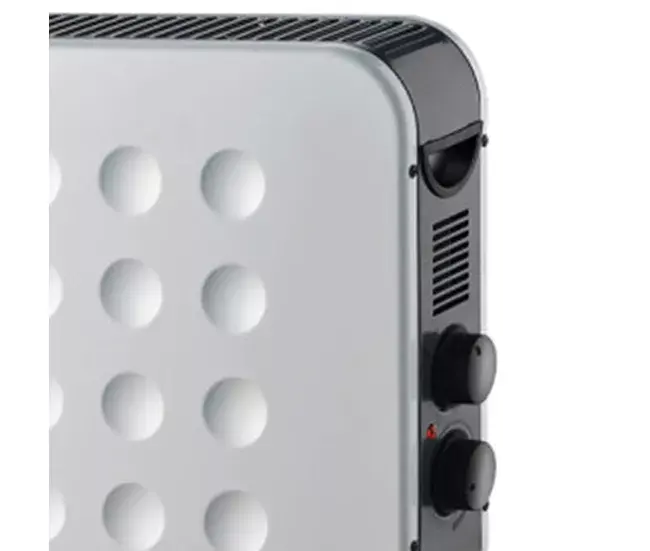 Convector electrico de la serie HOGAR, de fino y moderno diseño en color blanco y negro, con superficie de burbujas, acoplable a cualquier estilo de decoracion para comedores, salones, dormitorios y zonas de trabajo en general. Realizado en metal y policarbonato.Esta equipado con 2000 watios de potencia de calefaccion que permiten calentar eficazmente y con bajo consumo cualquier estancia. Con dos potencias seleccionables, 1250w/2000w para elegir dependiendo del espacio a calentar, dispone tambien con una FUNCION TURBO, para cuando se desee calentar rapidamente una estancia que este a baja temperatura. Viene con Termostato de Ambiente Ajustable y proteccion sobrecalentamiento, cuando se obtiene la temperatura seleccionada, se apaga automaticamente, ahorrando energia, hasta que sea necesario volver ponerse en marcha y calentar para llegar a la temperatura optima.Se presenta con un diseño facil de transportar gracias a una asa incluida en su es