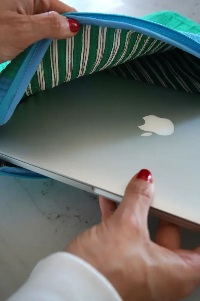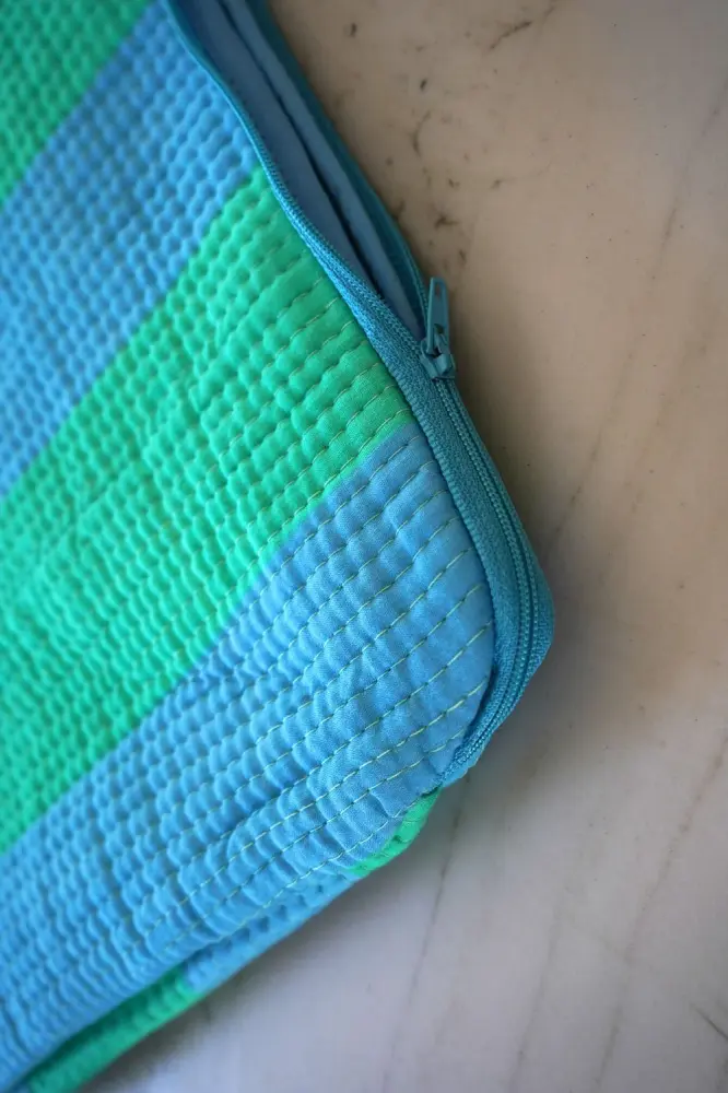 Custodia imbottita con cerniera per laptop o iPad, perfetta da viaggio o da portare quotidianamente in borsa. Realizzata in 100% cotone e dipinta a mano in India.