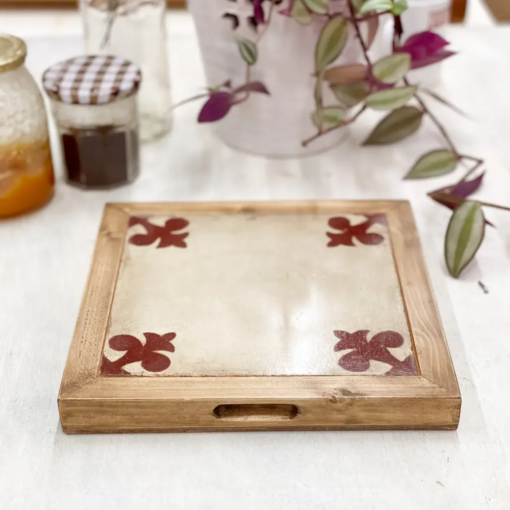 La baldosa Trébol es una baldosa antigua de colores suaves con motivos carmesí.