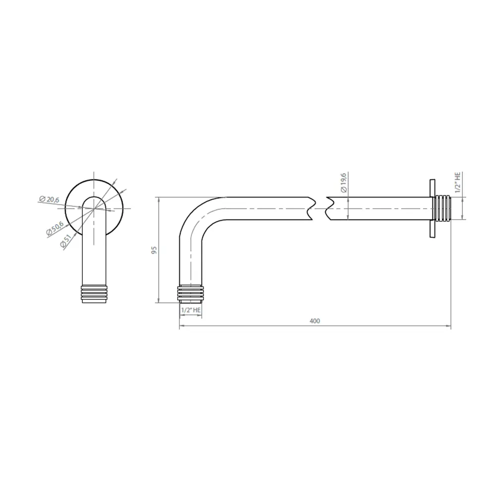 Brazo de ducha básico que permite ser combinado con cualquiera denuestros platos de ducha Stretto.
