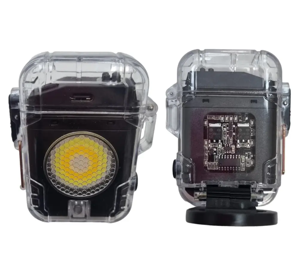Encendedor electrónico modelo D52-2 con carga tipo-C, imán y práctica linterna LED incorporada. Diseño contemporáneo para encendido de uso diario. Recargable y conveniente.