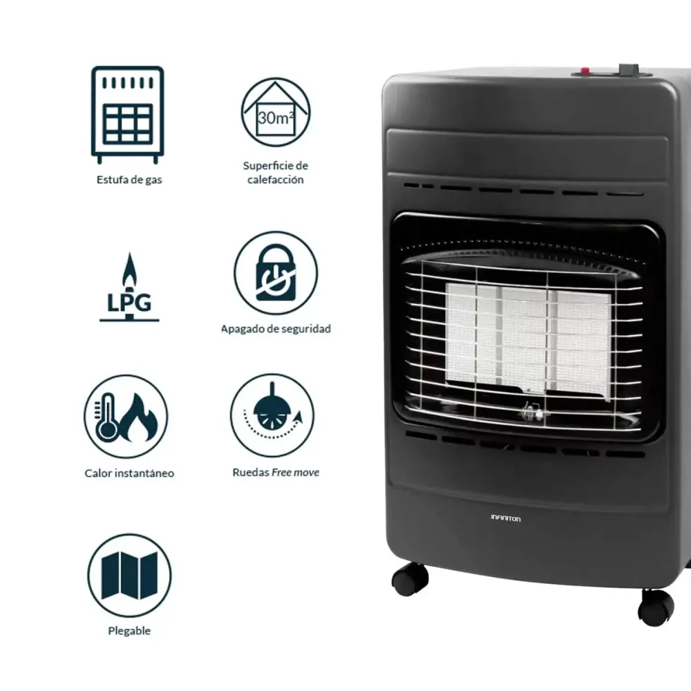 Estufa de gas Infiniton HG-FL3 ignición electrónica y diseño plegable
