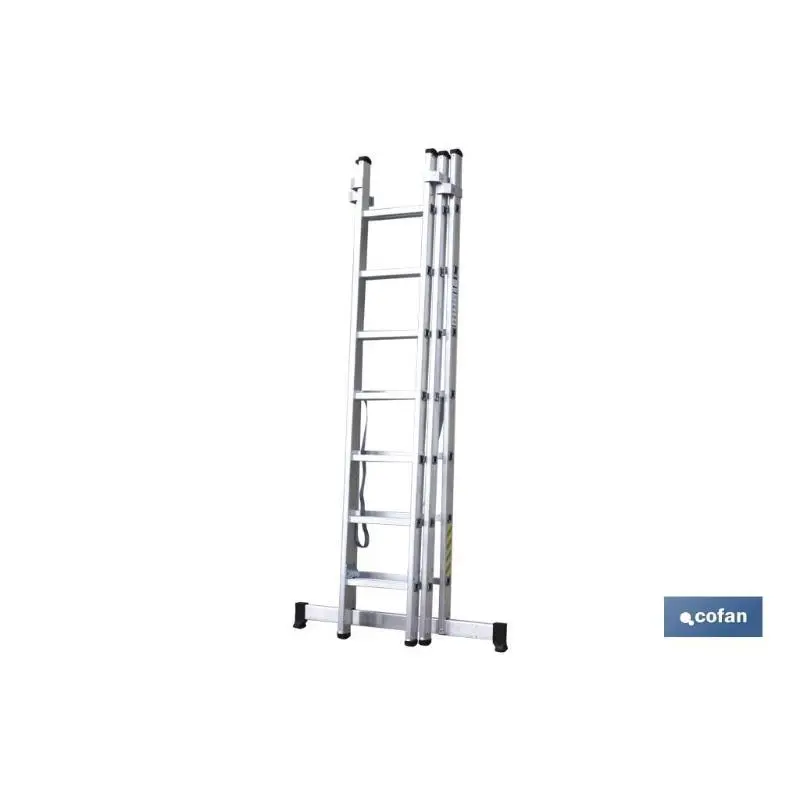 Escaleras de aluminio en tres tramos con en 131 y resistencia a 150 kilos máximo.Especificaciones