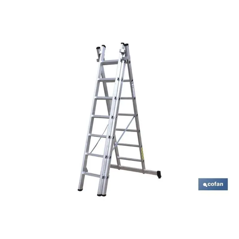 Escaleras de aluminio en tres tramos con en 131 y resistencia a 150 kilos máximo.Especificaciones