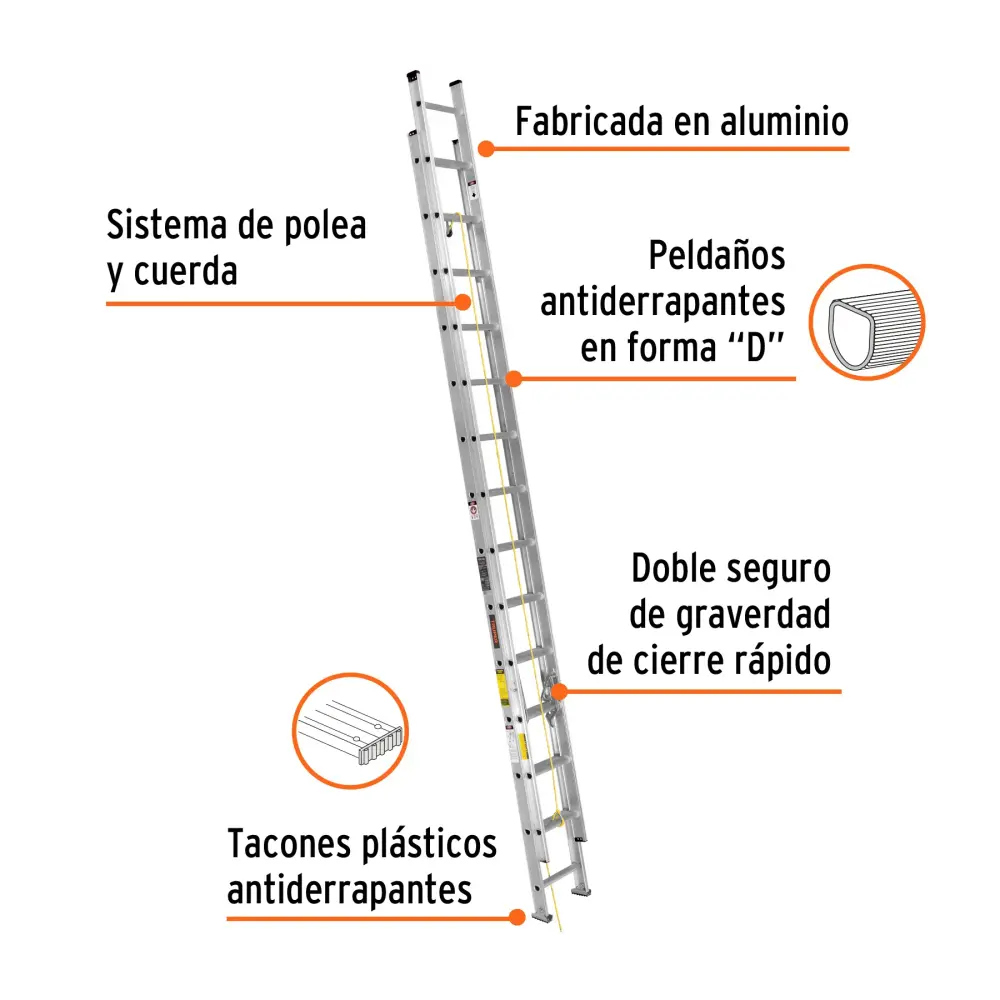 ESCALERA DE EXTENSIÓN, TIPO LLL, 28 ESCALONES ✔ Estructura resistente a la oxidación para interior ✔ Sistema de bloqueo en cada nivel de altura 🛒 Alcanza alturas con seguridad y movilidad