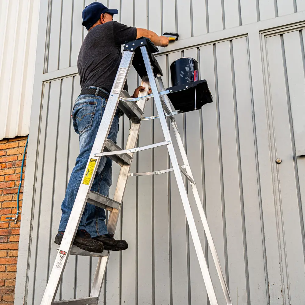 ESCALERA DE TIJERA TIPO 3, 5 ESCALONES ✔ Soporte para cubo de pintura en la plataforma ✔ Capacidad de carga adaptada a tareas domésticas 🛒 Desplázate y ajusta sin esfuerzo