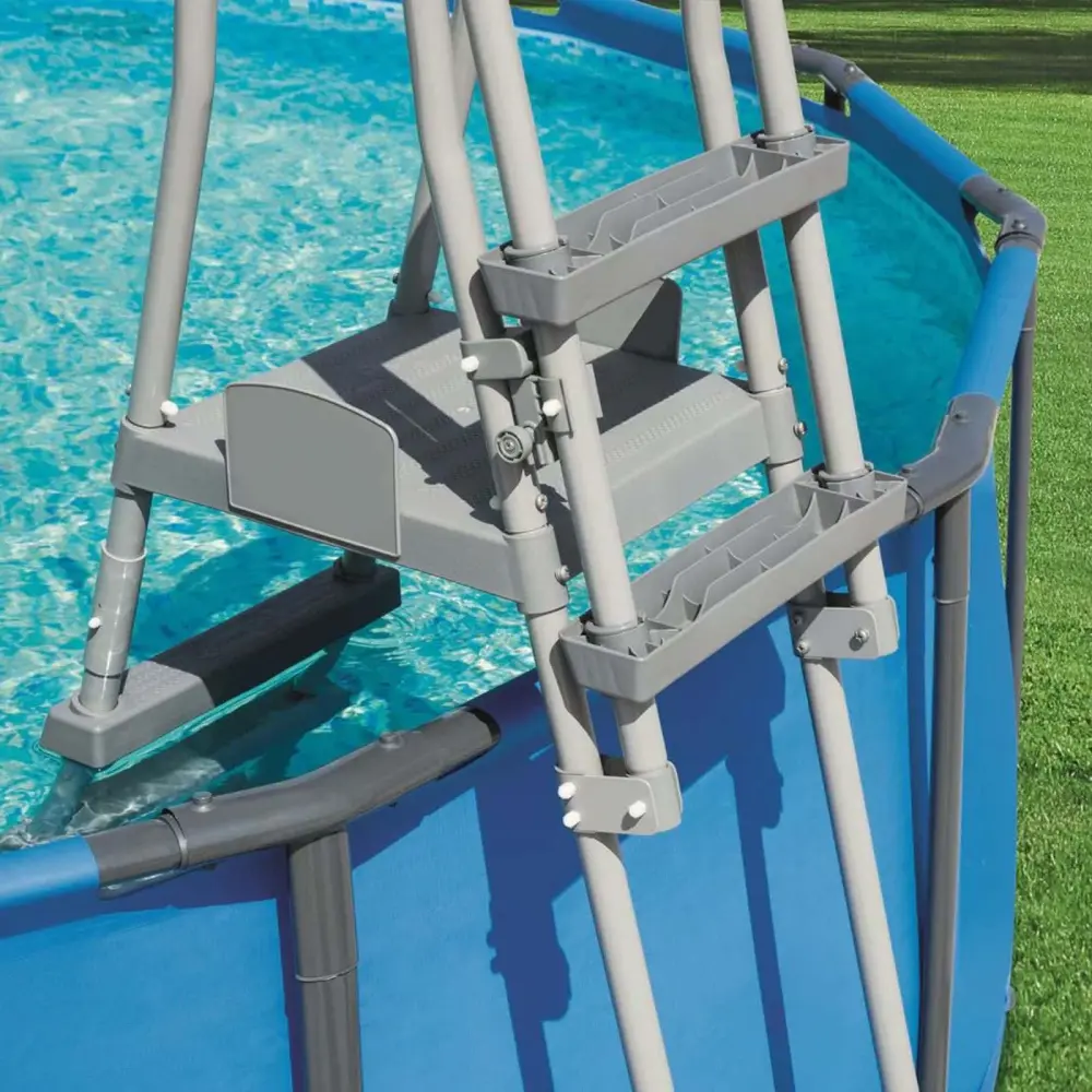 La escalera para piscinas Bestway es el accesorio que necesita su piscina ya que posibilita una entrar y salir del agua de forma sencillo y segura. La escalera de 132 cm es sencilla de instalar, cuenta con marcos de metal resistentes a la oxidación y peldaños diseñados para soportar gran peso. Además, la escalera exterior se puede levantar para evitar que los niños entren en la piscina sin supervisión.Disfrute su piscina cómodamente y aumente la seguridad gracias a la escalera Bestway.Atributos:– Estructura de metal resistente a la corrosión.- Peldaños de plástico de gran dureza.- Intuitivo montaje.- La parte exterior de la escalera se puede bloquear en la posición superior para evitar que los niños entren en la piscina sin el control de un adulto.- Contenido: Una escalera de piscina de seguridad.- Seguridad del fabricante, Bestway.Especificaciones