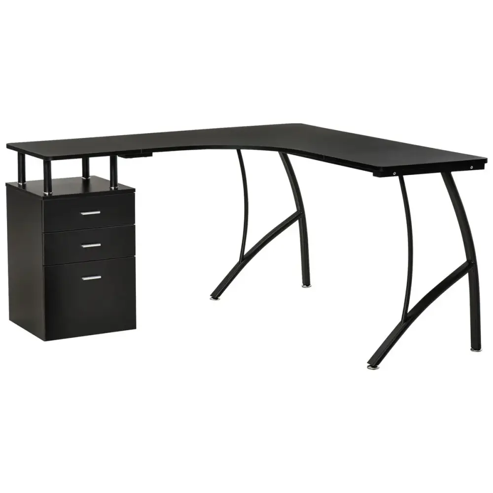 Escritorio Mandarina Homcom esquinero con 3 cajones