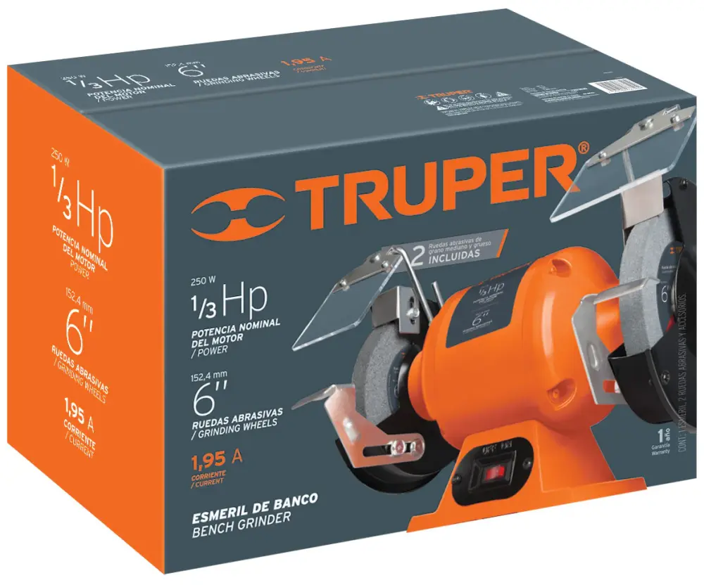 ESMERIL DE BANCO 1/3 HP, 6′ ✓ Materiales de Calidad Premium ✓ 1 Año de Garantía del Fabricante ► No te lo pierdas