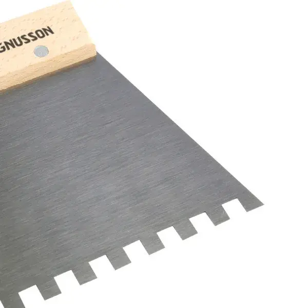 Este peine con muescas para aplicar adhesivo para azulejos U9 de Magnusson está diseñado para esparcir el adhesivo uniformemente en las paredes. Con su hoja de acero resistente y su mango de madera, esta herramienta garantiza una gran durabilidad durante un uso intensivo y prolongado.