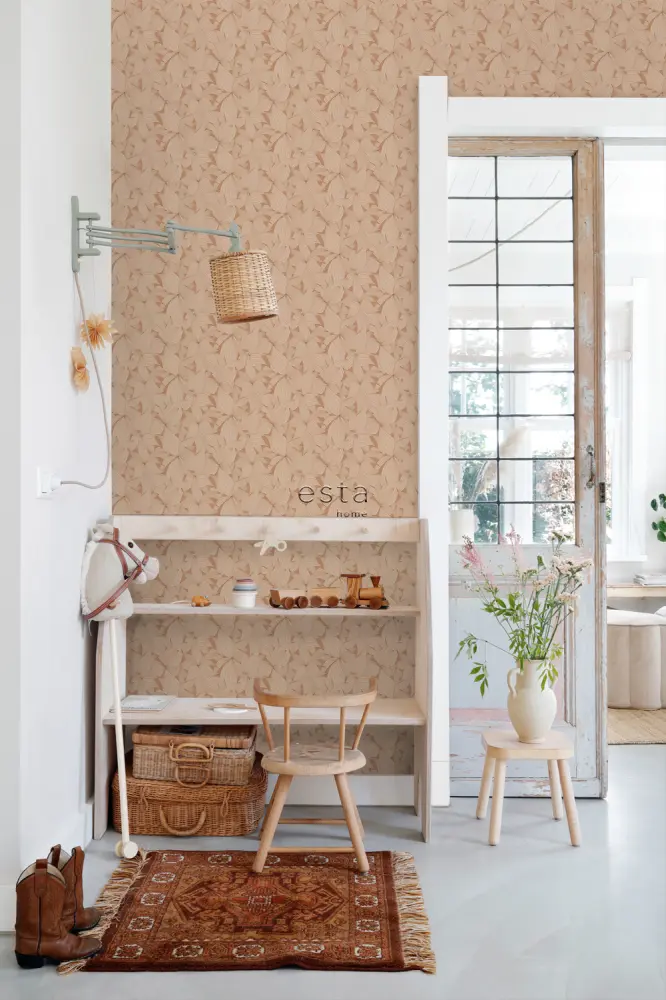 Esta papel pintado no tejido es muy sencillo de colocar. Encola la pared con cola de empapelar y coloca el papel pintado en la pared. No es necesario disponer de una mesa para encolar, ya que se aplica el papel pintado sin intermediarios desde el rollo. El papel pintado también resulta básico de retirar, incluso después de muchos años. ESTAhome aconseja utilizar Wal