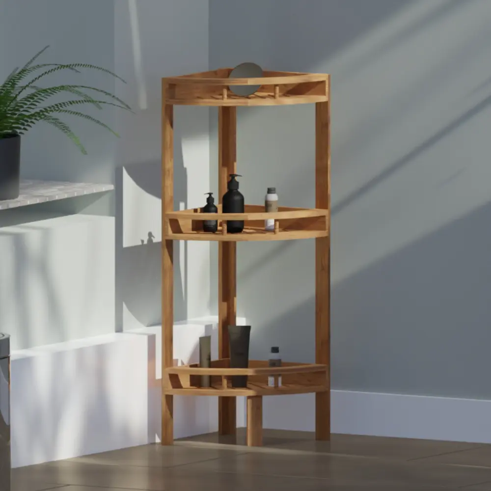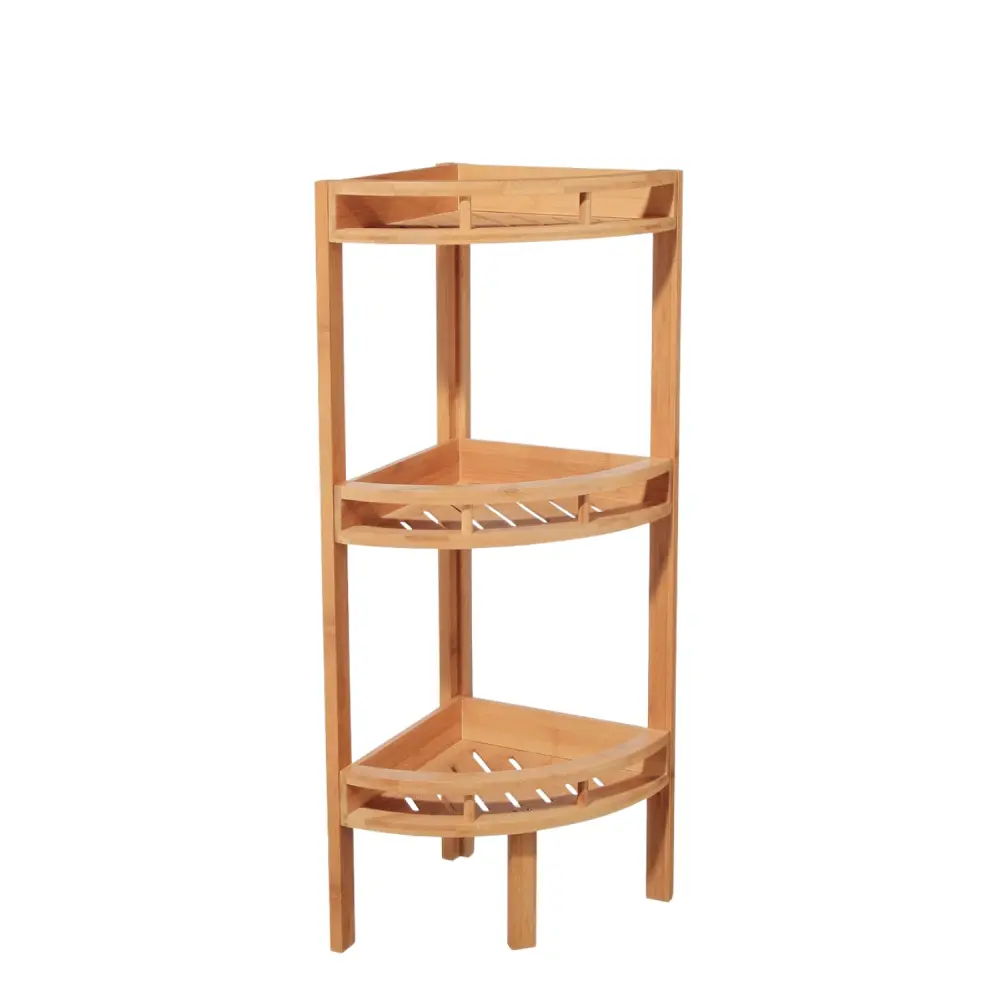 Estantería rinconera en bambú con 3 niveles canoply 7house ✓ Peso distribuido para mayor estabilidad en uso ✓ Superficie tratada contra la cal y el sarro ► Elige durabilidad y estilo en tu lavabo