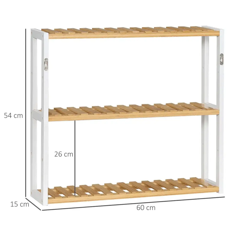 Estantería de pared Mihna Homcom 3 estantes blanco/natural ★ Incluye nivel de burbuja para colocación precisa ★ Gancho extensible para adaptarse a distintos grosores → Organiza tu hogar con ganchos versátiles