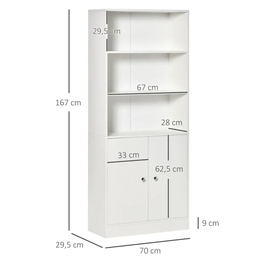 La estantería de almacenaje modelo Grove deHomcom es la respuesta perfecta para sostener tus espacios ordenados yelegantes. Con un diseño que combina lo clásico y lo moderno, esta estanteríaes ideal para diversas áreas del hogar como el estudio, dormitorio o sala deestar. Compuesta por 3 estantes abiertos y un armario inferior con baldaajustable, ofrece amplio espacio para exhibir y almacenar libros, decoracioneso ropa. Su estructura robusta de melamina de madera asegura durabilidad y sencillomantenimiento, mientras que los pomos metálicos permiten un acceso claro alarmario. Con dispositivo antivuelco incluido, garantiza estabilidad y seguridadal fijarse a la pared.