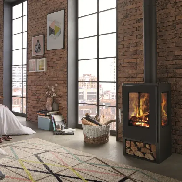 Estufa diseñada para una visión 360 º del fuego. La calefacción de leña es una elección económica y ecológica para sostener tu hogar a la temperatura deseada.