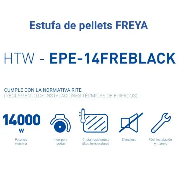 Estufa de pellet para exterior modelo Freya con 14000 W de potencia con la que podrás calentar un superficie de hasta 20 m².