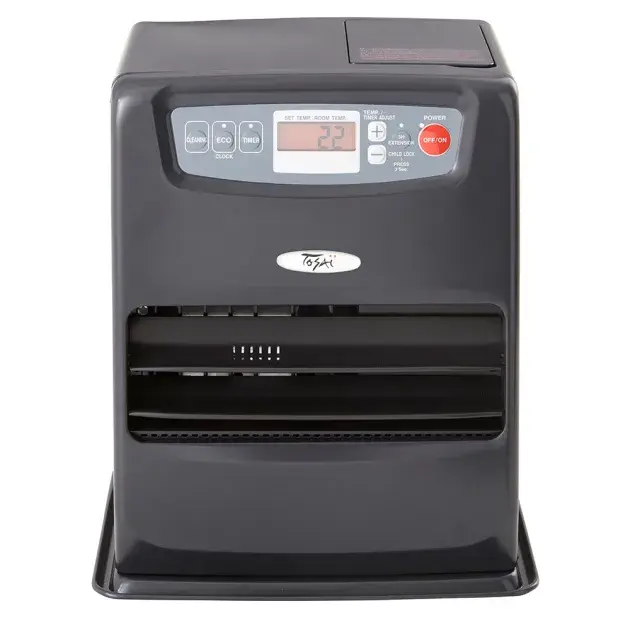 Estufa de energía líquida de Tosai que cuenta con una potencia mínima de 775 W y máxima de 3000 W, siendo adecuada para calentar una superficie de hasta 120 m3.