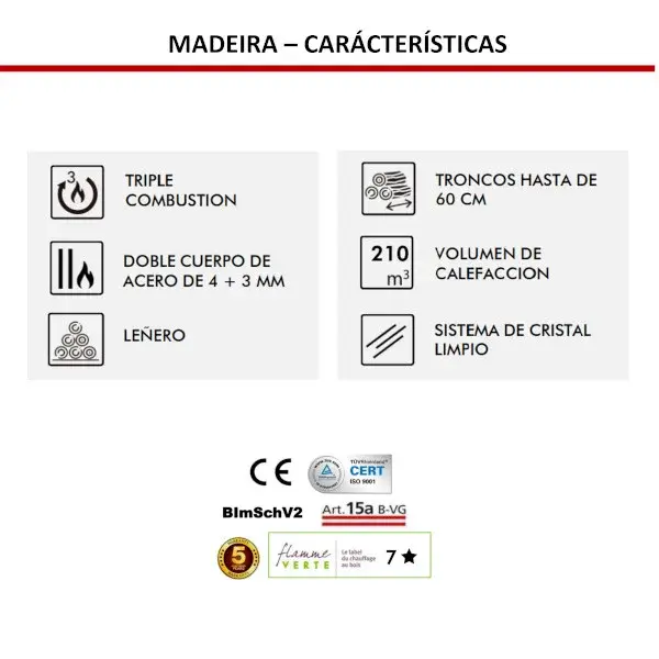 No necesita grandes obras, sólo una salida de humo.Especificaciones
