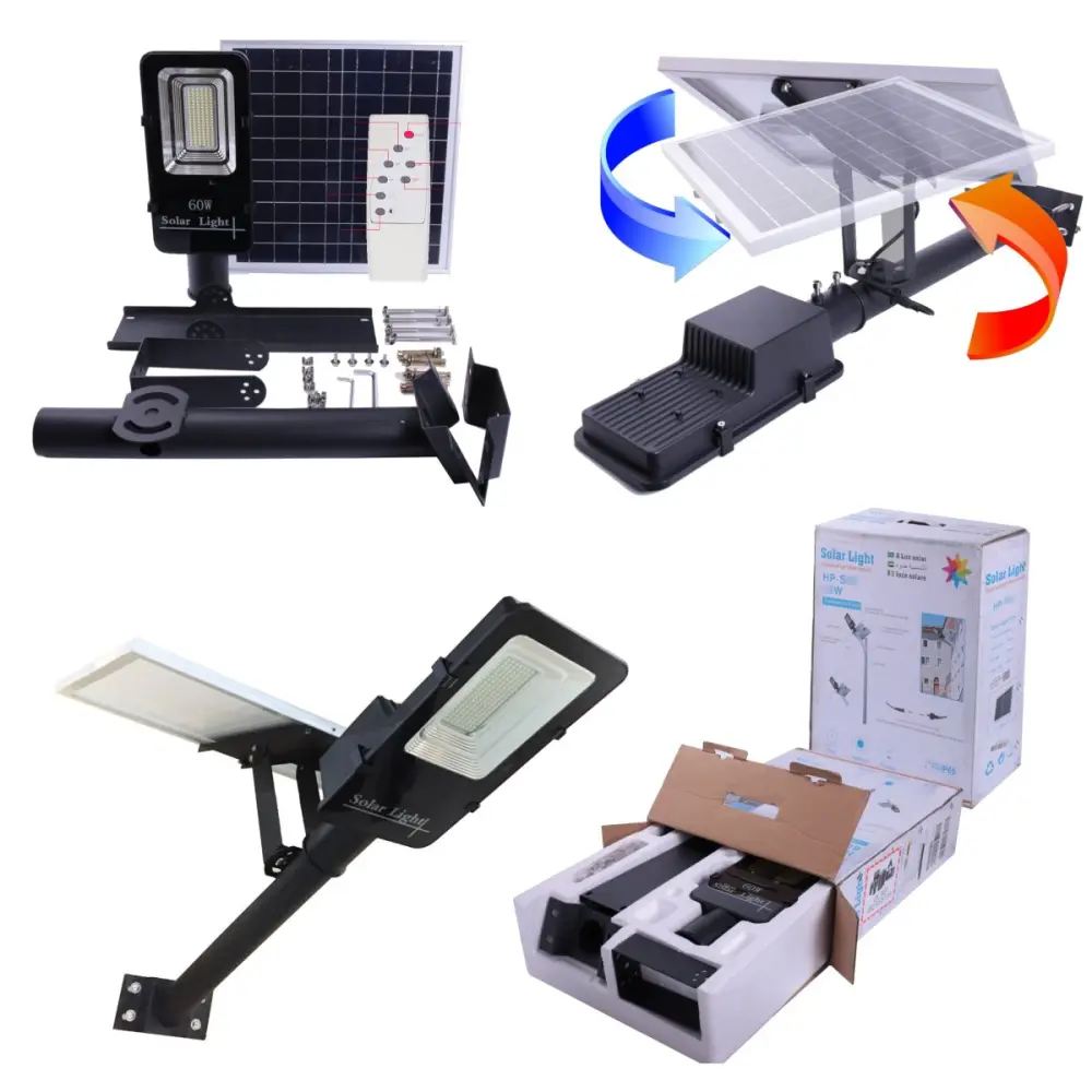Farola de 60w con panel solar orientable ✔ Ángulo de iluminación ajustable para dirigir la luz donde se necesita ✔ Materiales que no amarillean con el tiempo por el calor 🛒 Ilumina tu techo con estilo