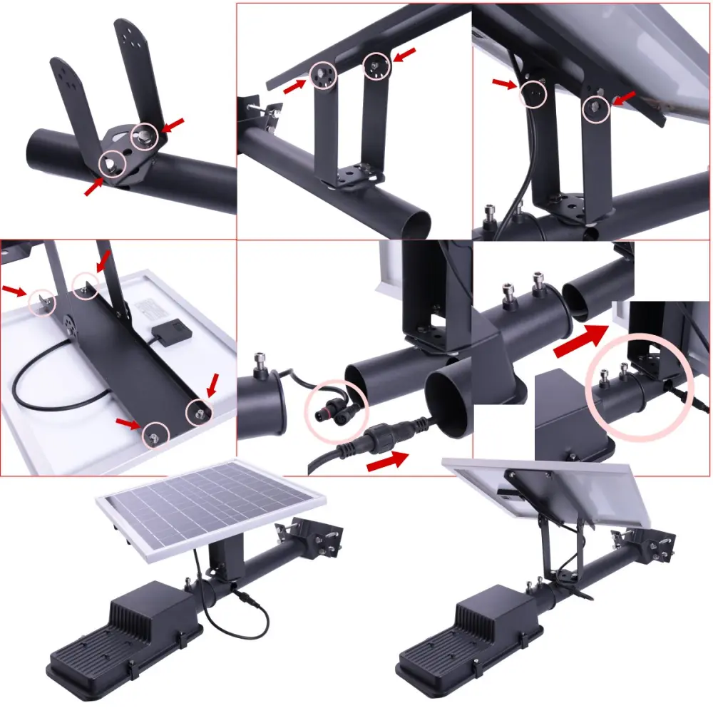 Farola de 60w con panel solar orientable. Con batería de ion-litio. Luz blanca fría 6000k. panel solar policristalino de 20w, largo rendimiento con unas dimensiones de 34 * 34 cmla farola solar de 60w viene equipada con una batería de ion litio fostato lifepo de alta calidad.con capacidad de carga de 11.5a y una vida media de 1500 ciclos de carga. Con el panel solar de esta farola solar de 60w el tiempo de carga sería de unas 6 horas a pleno rendimiento.La batería esta compuesta por 4 elementos de bataría recargable lifepo 32650, con una capacida de carga de 12000mah y tensión de 6.4vlos calculos nos dan una autonomía de 2 noches para días lluviosos.la farola solar es de una potencia lumínica de 60wequipada con 120 leds smd5730 con un flujo luminoso de 1375 lúmenesla farola solar de 60w puede instalarse en el exterior expuesta a la inclemencias meteorológicas. Tiene protección ip65fabricada en aluminio de alta calidad con tornillería de acero inoxidablela farola solar viene con todo lo