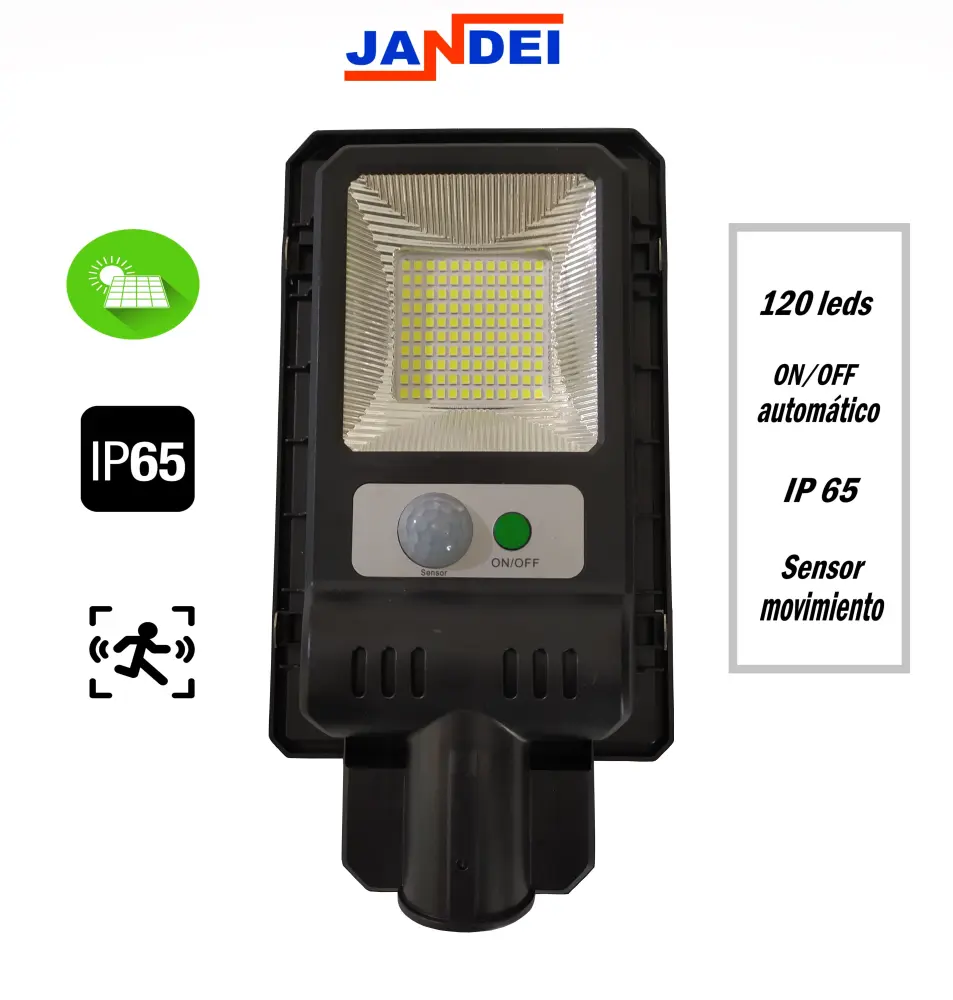 Farola solar compacta 120 LEDs 6500k con sensor de movimiento