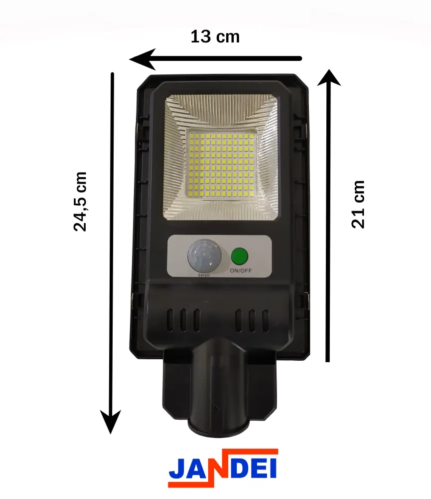Farola solar palma compacta 120 leds sensor de movimiento placa solar policristalina integrada y batería litio 2000mahfarola con placa solar policristalina integrada, 120leds, sensor de movimiento y batería de litio con una capacidad máxima de 2000 mah.farola con el panel solar integrado en la parte superior de la carcasa.equipada con 120 leds smd2835 con un flujo luminoso de 120 lúmenesel panel solar va montado en la parte superior de cara al cielo, donde recibirá la luz solar para la carga de la batería.panel solar policristalino con unas dimensiones de 19*11,5cm, alto rendimiento carga la batería a lo duradero del díaencendido, apagado automático y sensor de movimientofarola solar con encendido y apagado automático, cuando oscurece lo suficiente la farola se enciende sola, y cuando clarea lo suficiente se apaga sola y se pone cargar gracias a su panel solar.no lleva sensor crepuscular y no es necesario regulación, la farola detecta cuando se debe encender o apagar gracias a la energía