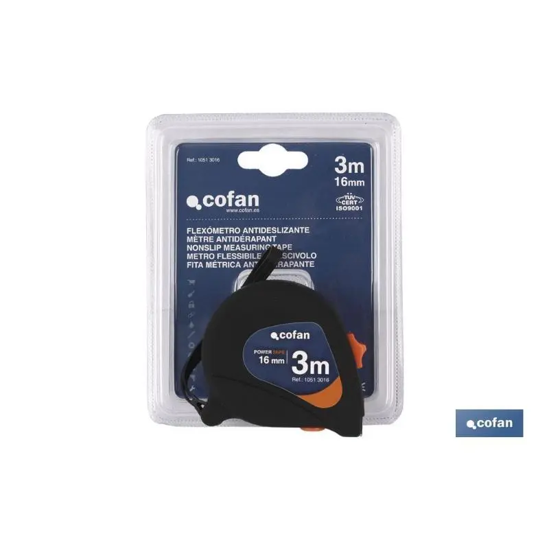 Flexómetro antideslizante recubierto totalmente en goma con medidas en 3,5 y 8 metros de longitud.Especificaciones