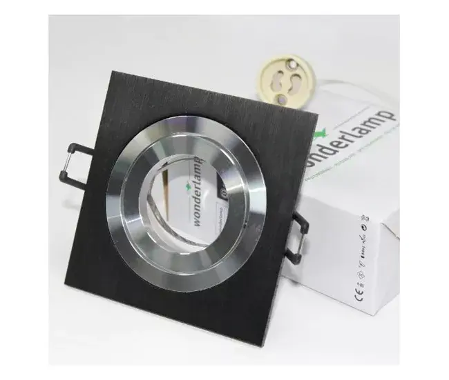 Empotrable para el techo orientable cuadrado en negro. Cuenta con portalámparas cerámico GU10 con cable de 15 cm. Ángulo de basculación del ojo de buey 30º y orientable 351º. Foco perfecto para iluminación en tiendas de moda, restaurantes, salones, dormitorios. Marca: Wonderlamp.Dimensiones: 90 x 90 x 25 mm. – Marca: Wonderlamp.- Incluye portalámparas GU10 (directo a 220v).- IP: 20.- ÁnÁngulo basculaciónón: 30º- Ángulo de giro: 351º.- Taladro: Ø80 mm (agujero encastre techo)- Material: Aluminio. IP 20- 3 años de garantía.- Bombilla no incluida NO NECESITA TRANSFORMADOR!