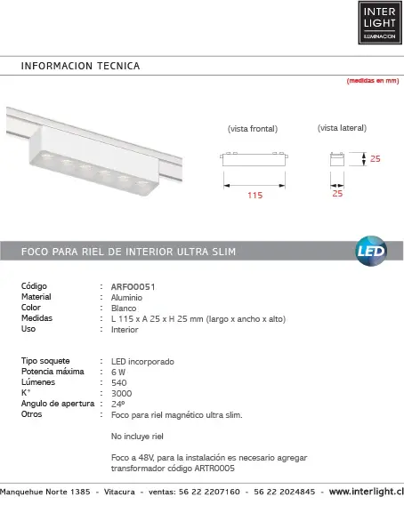 Foco a 48V, para la instalación es necesario agregar transformador código ARTR0005