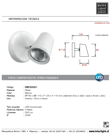 | MEDIDAS: | ØF 60 x F 120 x H 110 mm (diámetro foco x fondo x alto) |
