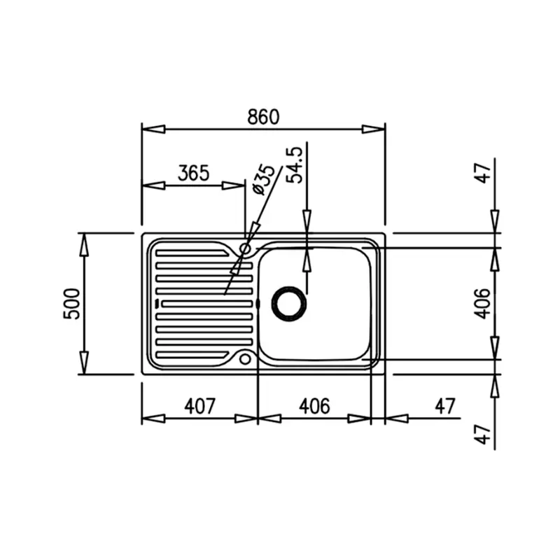 Atributos principales: Fregadero de cubeta y escurridor Resistente corrosiónidable 18/10 Válvula canasta 3 1/2″ Chapa de gran espesor Acabado grande brillo Profundidad de la cubeta 190 mm Mueble de 50 cm Sifón Medidas generales Anchura : 850 mm Altura : 500 mm Estructuras Tipo de fregadero : Acero inóxidable Configuración del fregadero : Posición derecha Base (cm) : 50 Ubicación del fregadero : Encastrables Complementos Complementos opcionales : Tabla de corte de madera con colador de acero inoxidable,Colador de acero inoxidable,Tabla de corte de cristal Complementos incluidos : Válvula canasta 3 ½» con desague y sifóny sifón FICHA TÉCNICA: Tipo: 1 Cubeta con Escurridor Medidas del Mueble: Mueble de 50 cm Tela: Acero Inoxidable Tono: Acero InoxidableEspecificaciones