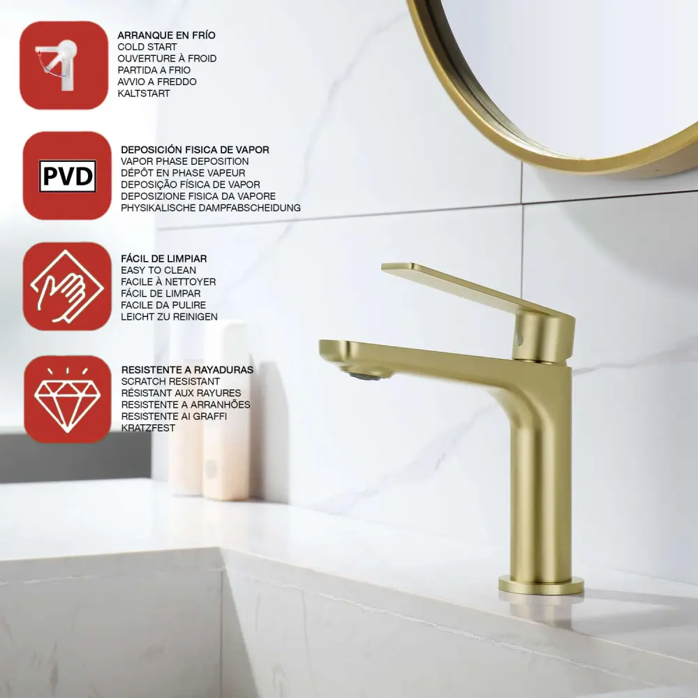 Grifo monomando lavabo sky bath oro cepillado serie glory