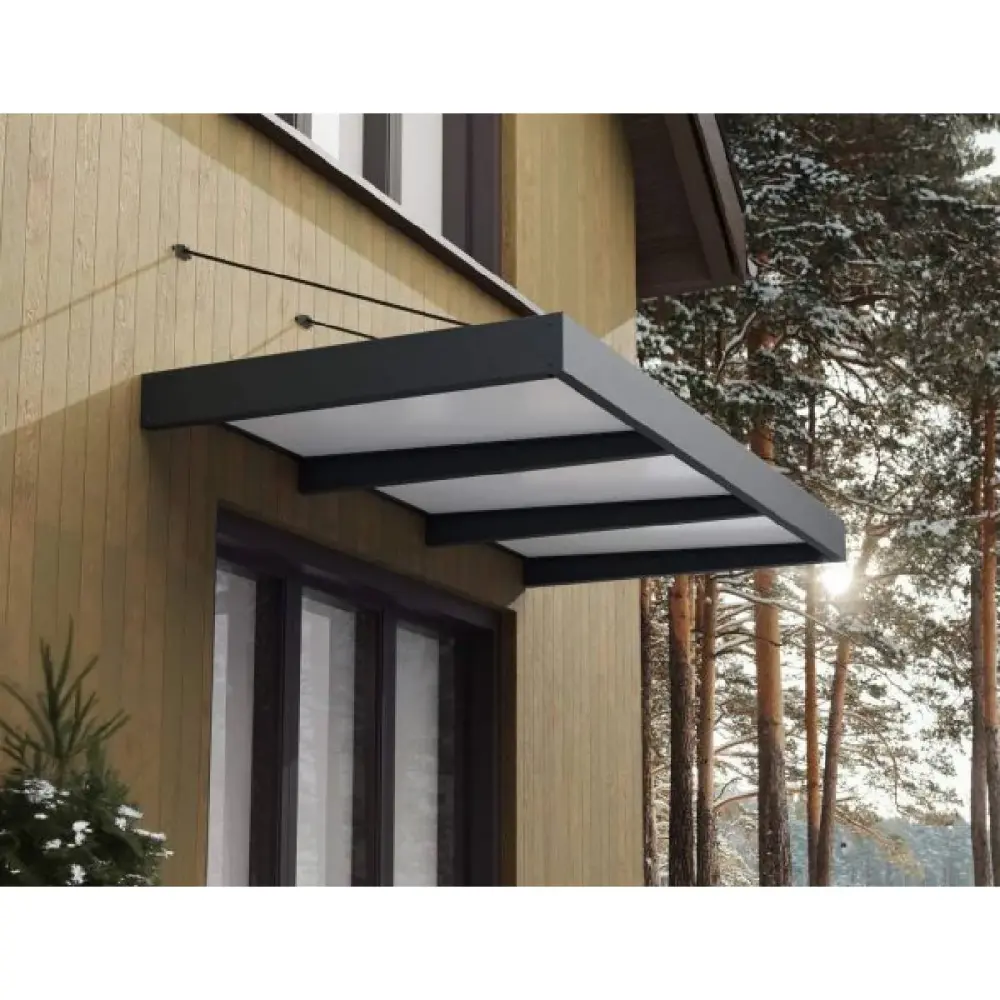 Un hermoso marco de aluminio gris rodea un panel transparente que es tan resistente como atractivo, mejorando el aspecto y la funcionalidad del exterior de tu hogar. La cubierta moderna para puertas protege a ti, tu puerta, tu entrada y todo lo que está debajo. Esta marquesina ultra resistente para porches es cómodo de instalar y está diseñada para soportar condiciones climáticas adversas, asegurando que tú, tus pertenencias y tu puerta estén protegidos durante años. Con la marquesina para puertas Sophia, obtienes la protección que necesitas con el estilo que deseas.
