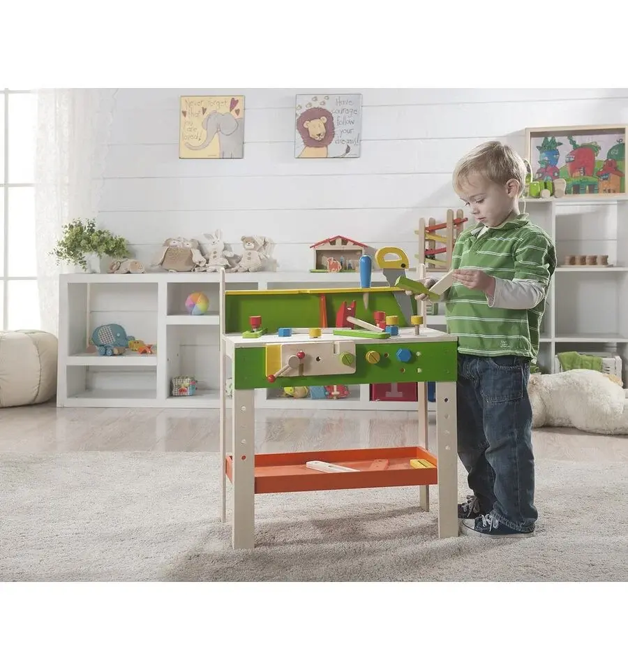Con este gran banco de herramientas de EverEarth, los peques se lo pasarán pipa con las tuercas, el martillo, el serrucho… hasta con el tornillo de banco!