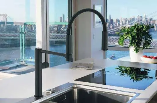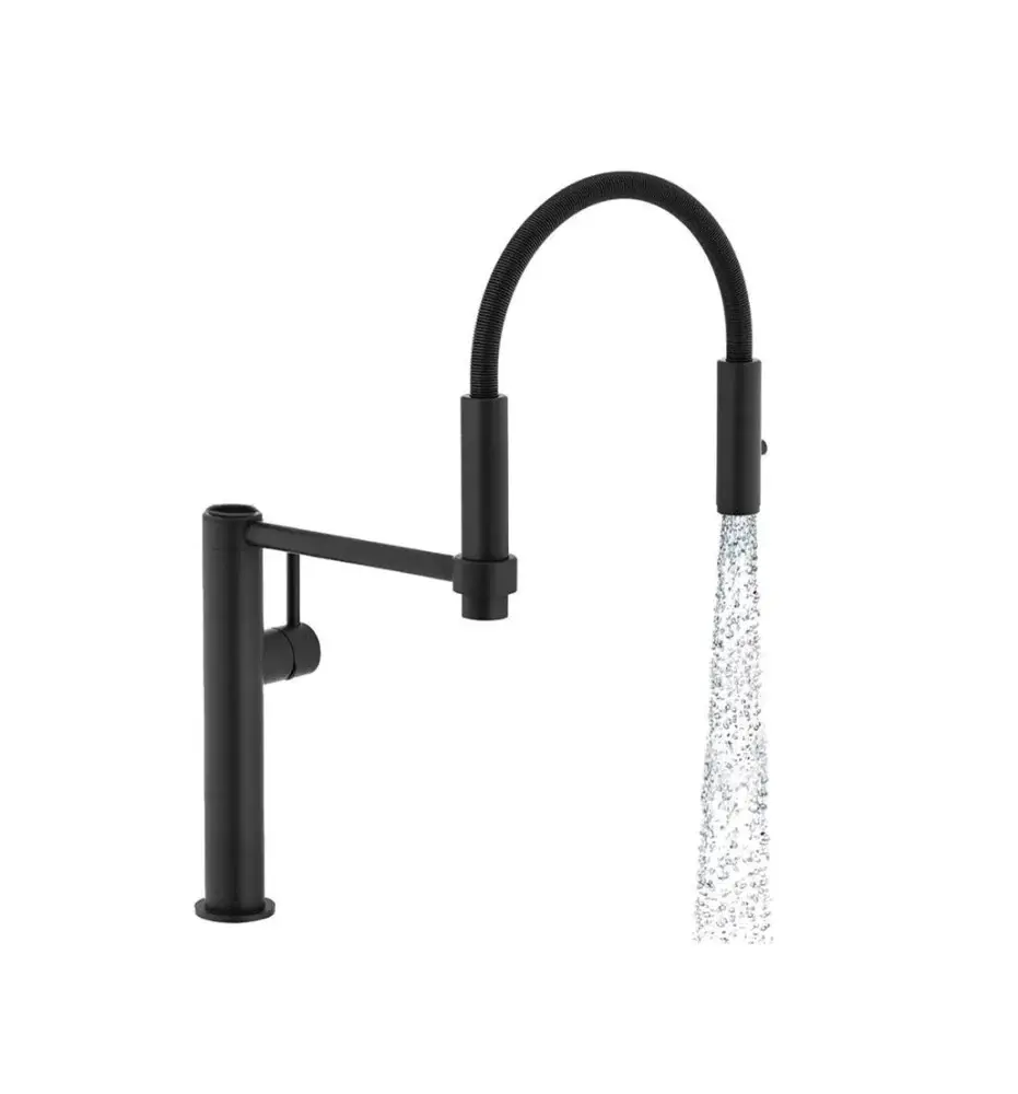 Funcionalidad sin límite. La maniobrabilidad del caño es fundamental para abarcar el mayor espacio de trabajo posible. El caño extensible contribuye para determinadas operaciones. Grifería de rotación completa 360° y flexo en caño extensible que no ocupa espacio dentro del mueble.