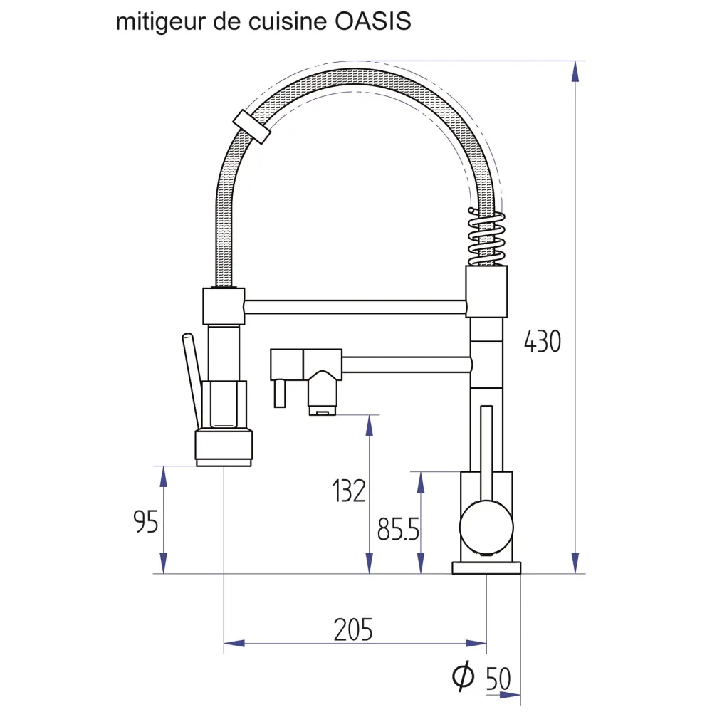 -Cuerpo de latón-Mango metálico-Caño bajo móvil con conmutador + caño alto móvil con resorte-Aireador ahorrador de agua + ducheta orientable de múltiples chorros con palanca de encendido/apagado-Cartucho cerámico de 35 mm de diámetro-Conmutador para ducheta-Dos mangueras de alimentación de acero inoxidable H3/8″ de 40 cm de longitud-Fijación muy sencilla mediante rosca maal del cabezal-Uso juegos pleno de fijaciones incluido-Se entrega con un maal de montaje-Aleación cobre utilizado en la fabricación conforme a la legislación vigente sobre materiales en contacto con agua destinada al consumo humano (Estándar conformidad de conformidad sanitaria emitida por un laboratorio aprobado por el Ministerio de Bienestar)-Grifo con garantía de 5 años (las piezas de desgaste tienen garantía de 1 año)Especificaciones